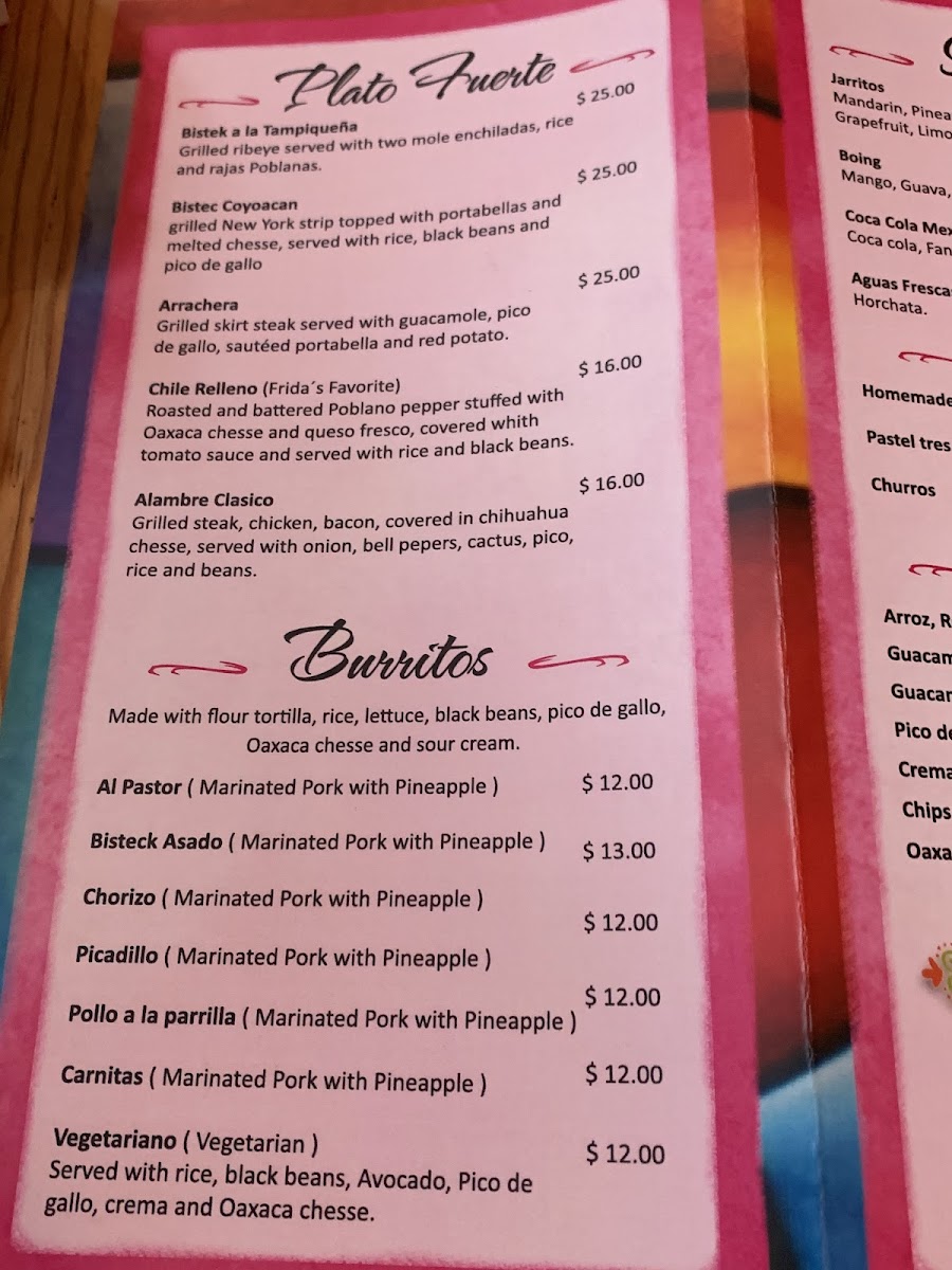 The drink selection is equally impressive, featuring an extensive array of mezcal and craft cocktails, with fan-favorite cantaritos delighting patrons. Guests can unwind with expertly crafted drinks like the Rosita, a delightful blend of Hornitos tequila and pomegranate juice. Decorated in an inviting style, the ambiance complements the delicious offerings, making each visit memorable. Whether you're indulging in takeout or dining in, Frida Cantina promises an unforgettable experience that celebrates the essence of Mexican culinary traditions.