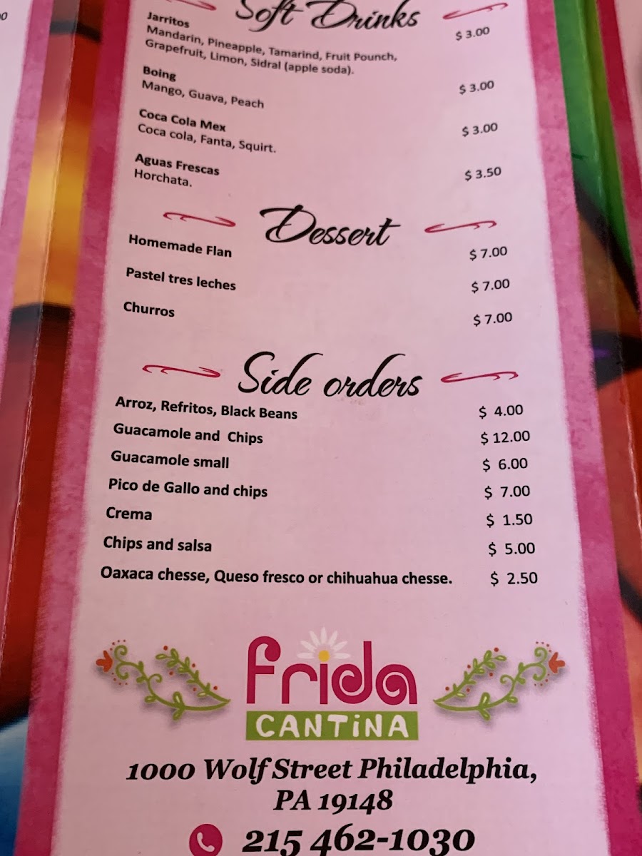Welcome to Frida Cantina, a vibrant gem nestled in Philadelphia’s culinary scene. This family-owned establishment captures the heart of Mexican cuisine through its diverse menu and warm atmosphere. Diners rave about the tacos al pastor, cabeza, and suadero, which are succulent and bursting with flavor. The enchiladas de mole and refreshing ceviche consistently receive high praise for their authenticity and taste.